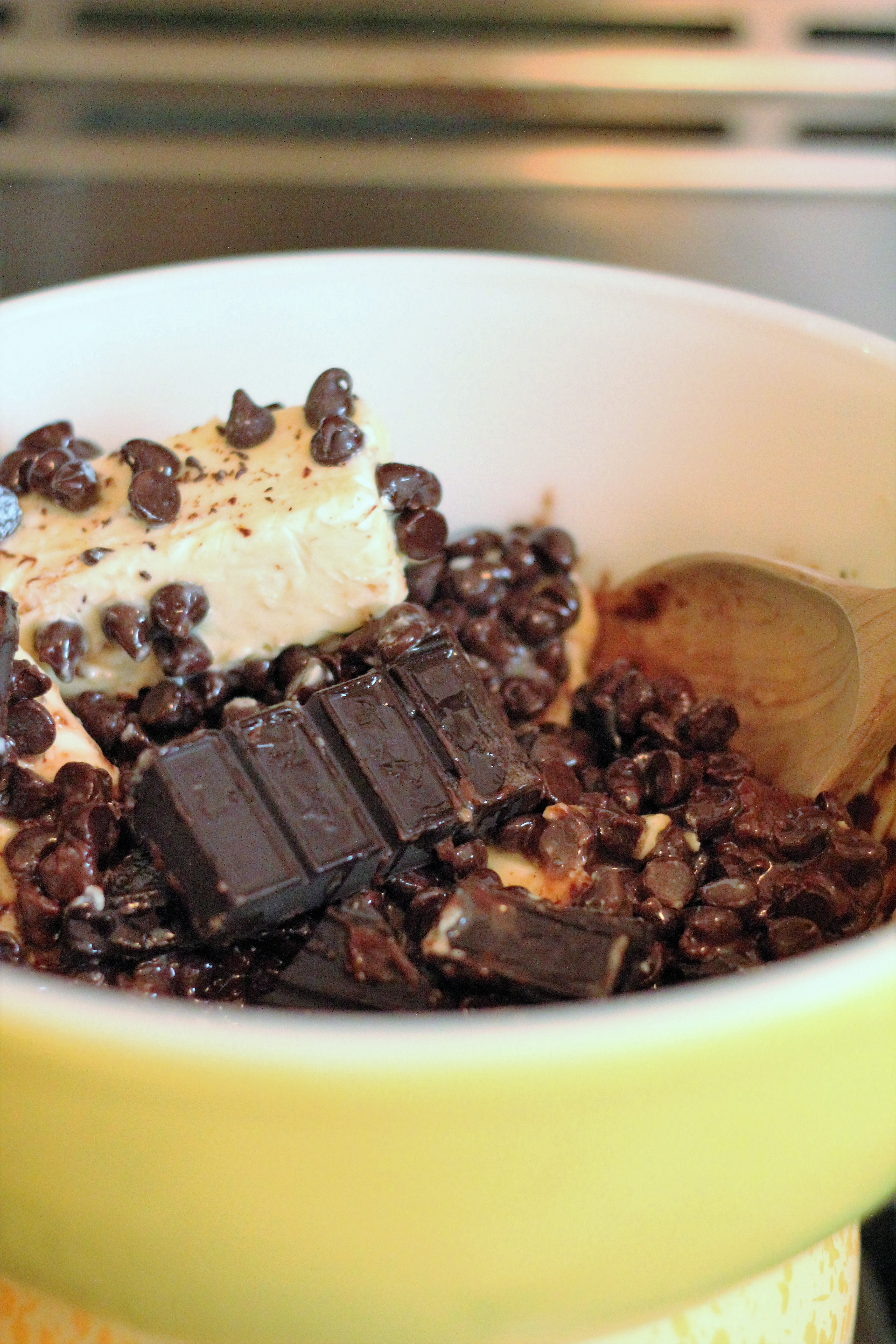 - 28 ounces semi-sweet chocolate chips divided