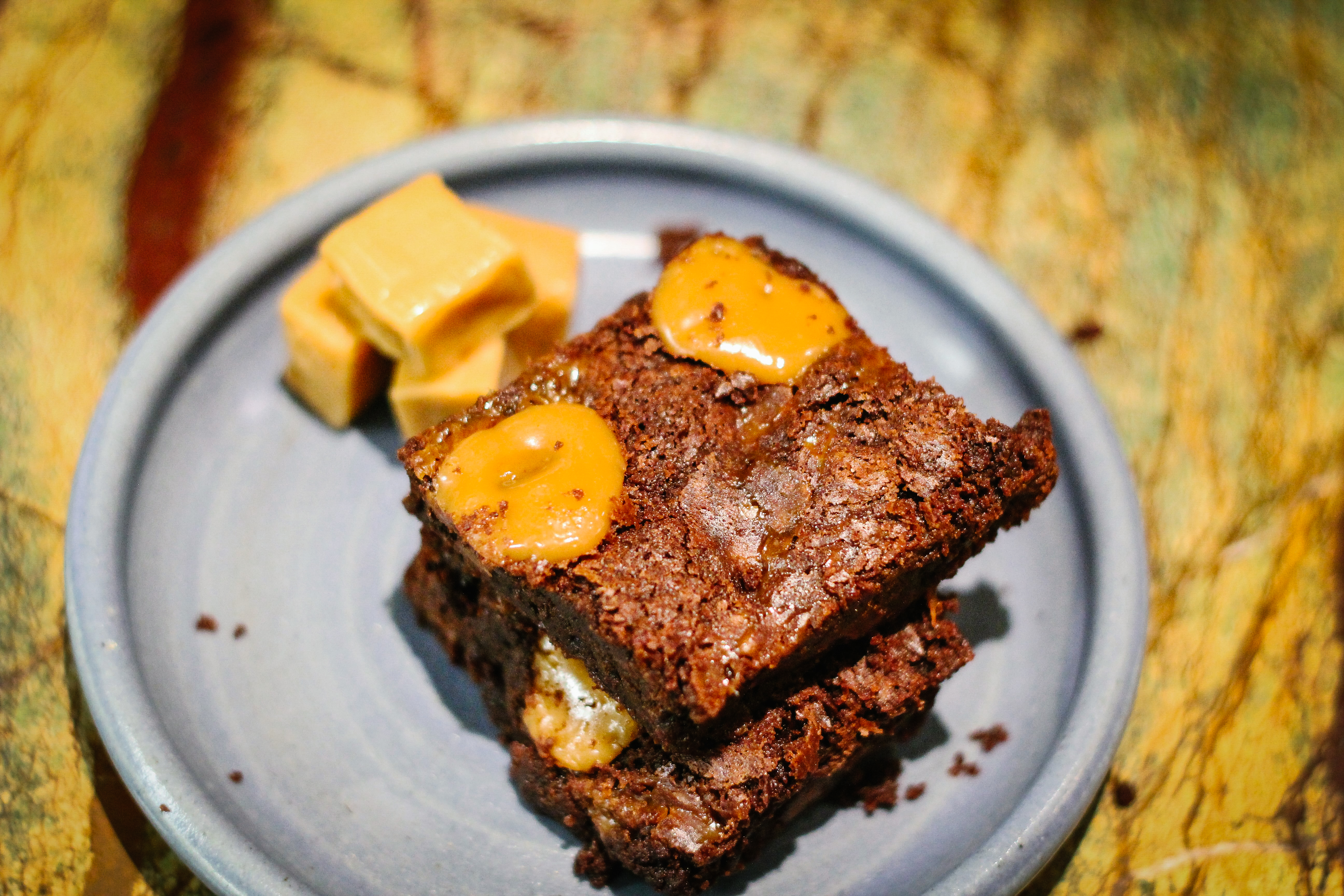 Just in time for Valentine’s Day, how convenient! This is a must make recipe if you love dark rich fudgy brownies. It comes loaded with nuts- (although I didn’t put them in mine because of a nut allergy in the family) - I think the nuts would help break up the intensity of the chocolate flavor. I chose instead to add melted caramels but you could do such a variety of amazing combos with this recipe or just leave them as written- truly fabulous.